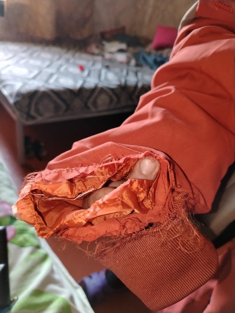The sleeves were not ripped, the arms didn't fit through, I had to rip them open and sew them again, which is unacceptable for a buyer, what to pay money for, the material is good if not counting the sleeves