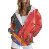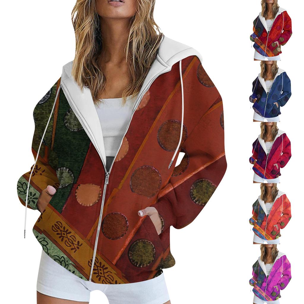 Women's Long Sleeve Print Sweatshirt Long Sleeve Pocket Jacket Zipper Hoodie Coat