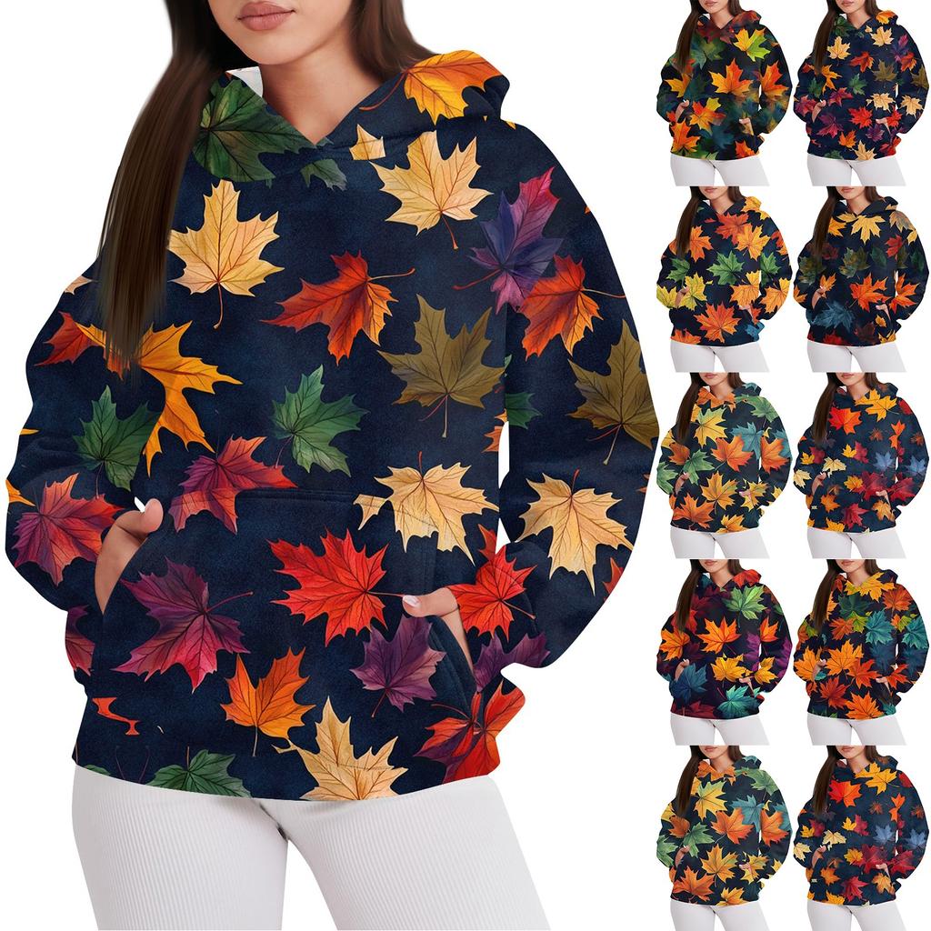 Women's Fashion Casual Pullover Hooded Sweatshirt Printed Long Sleeve Sweatshirt