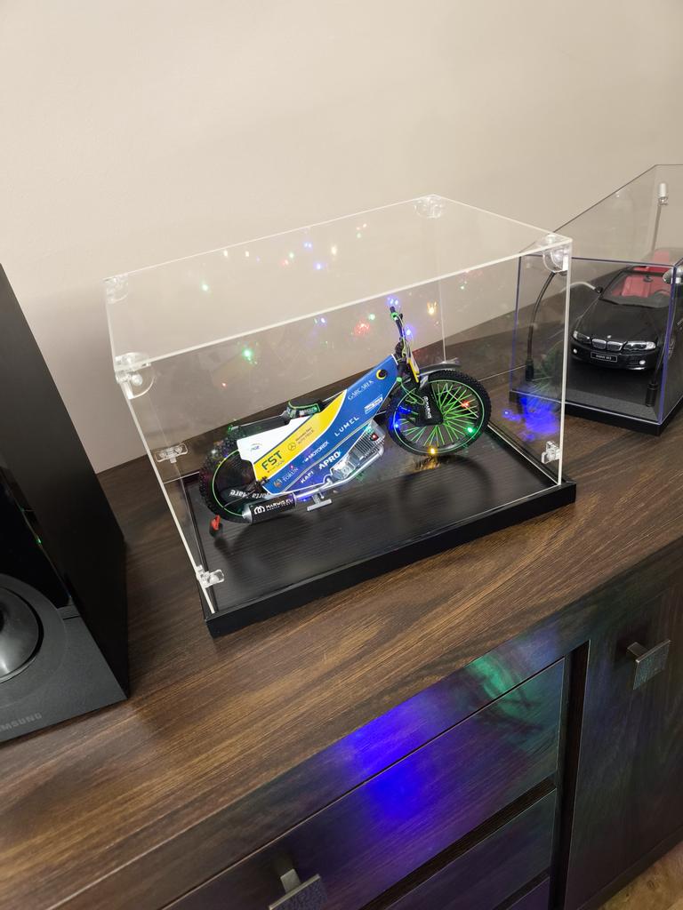 The display case is GREAT 👍. You have to "figure out" how to put it together at first, but once you get the hang of it, it's easy and quick. The display case is well-made. The speedway motorcycle looks amazing in it 👍.