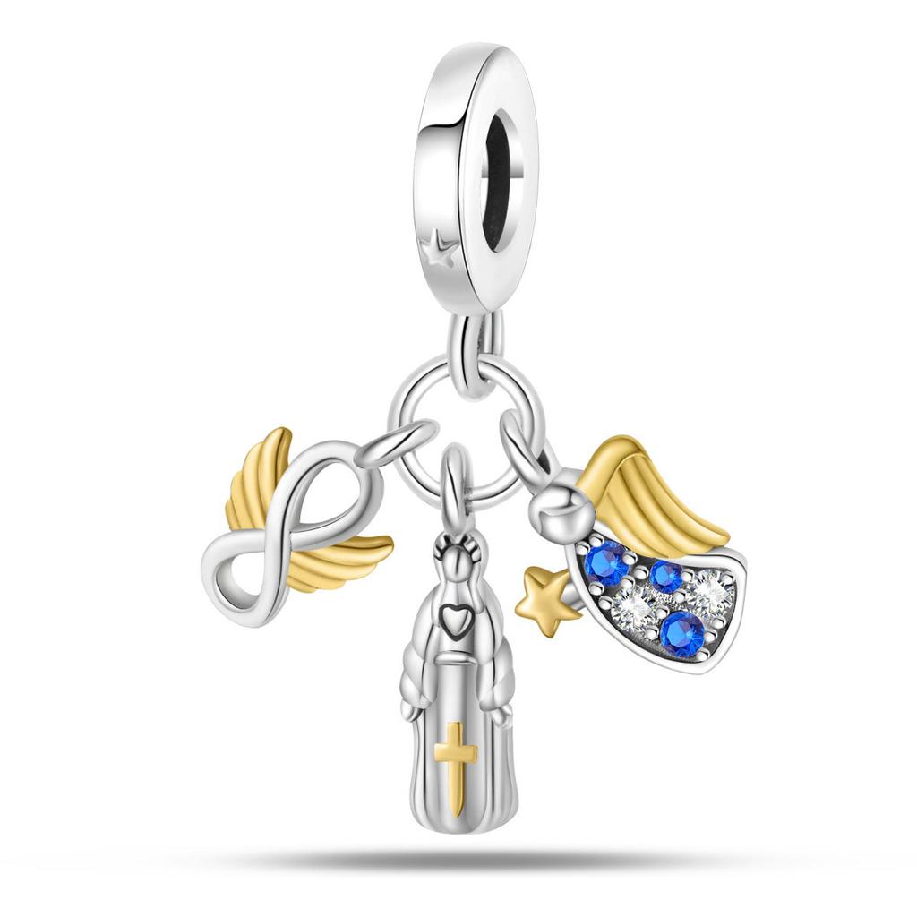 New White Copper Plated 925 Silver Pendant Religious Virgin Angel Three-Piece Diy Jewelry Accessories Bracelet — buy online with free worldwide shipping!