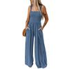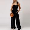 Women's Basic Simple High Waisted Knit Strapless Wide Leg Pants Pure Black One-piece Pants