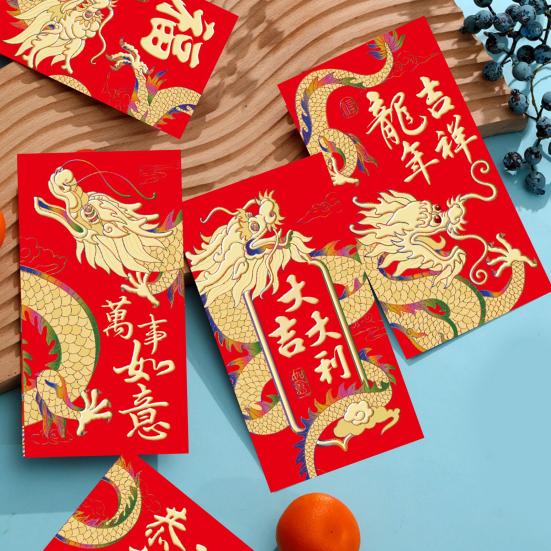 Eye-catching red envelopes with traditional Chinese dragon pattern, perfect for surprising friends and family during the New Year.