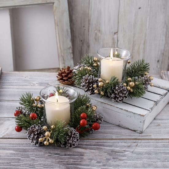 VERSATILE INDOOR & OUTDOOR USE: Suitable for both indoor and outdoor settings, these Christmas candle rings can be hung above the fireplace, placed by the front door, or used to adorn walls, creating a festive ambiance wherever they are displayed.