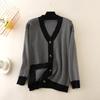 Autumn Women's Cardigan Sweater Women V-Neck Color Collision Loose Striped Sweater Jacket Long Sleeve Top