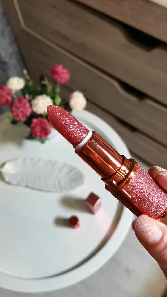 Glitter Rose Pink Lipstick Color Changing Lipstick Soft Natural Gloss with Velvet Finish Waterproof Long-Lasting Diamond Lip Gloss — buy online with free worldwide shipping!