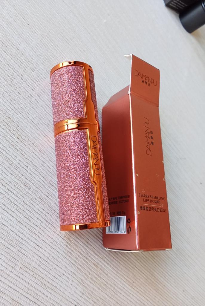 Lipstick with sparkles ✨ brand DAIMANPU 💗 Shade #03 This is a gloss lipstick that shows on the lips. The color is pink, but please note that the final result (shade of pink) also depends on your natural skin color. The texture of the lipstick is similar to a lip balm. The aroma is pleasant, barely perceptible. The design of the case and box is very beautiful, bright, festive. The lipstick looks very attractive, so you can even order it as a gift 🎁☺️. If the review was useful, put it as a favorite ❤️ I received the goods in 18 days in a combined package 🚚. The track was tracked completely. The arrival at the point of issue was announced by sms 📲. Packaging: bubble bag. The box is sealed in mica, all the necessary information is present. Expiry dates are indicated. Happy shopping and fast deliveries to everyone 🛍️☺️🚀🌹 And remember that every woman is a star, so shine brighter 🌞 PS: Need promo codes? Then be sure to visit my Telegram channel Olena.joom.thebest (t.me/olenajoom), where I regularly publish promo codes to make your purchases even more profitable 😘🛍️.