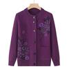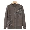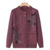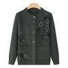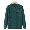 Print Middle-Aged Elderly Mother's Spring Autumn Long-Sleeve Sweater Women Knitted Bottoming Shirt Grandma Cardigan