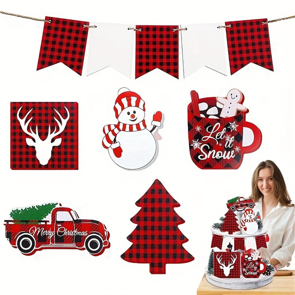 10 Pieces Christmas Tiered Tray Decor Winter Wooden Tabletop Signs Red And Black Plaid Theme Decor Hot Cocoa Signs Snowman Xmas Tree — buy online with free worldwide shipping!