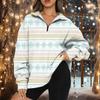 Women's Fashion Casual Long Sleeve Printed Zipper Turtleneck Drop Shoulder Sweatshirt Top