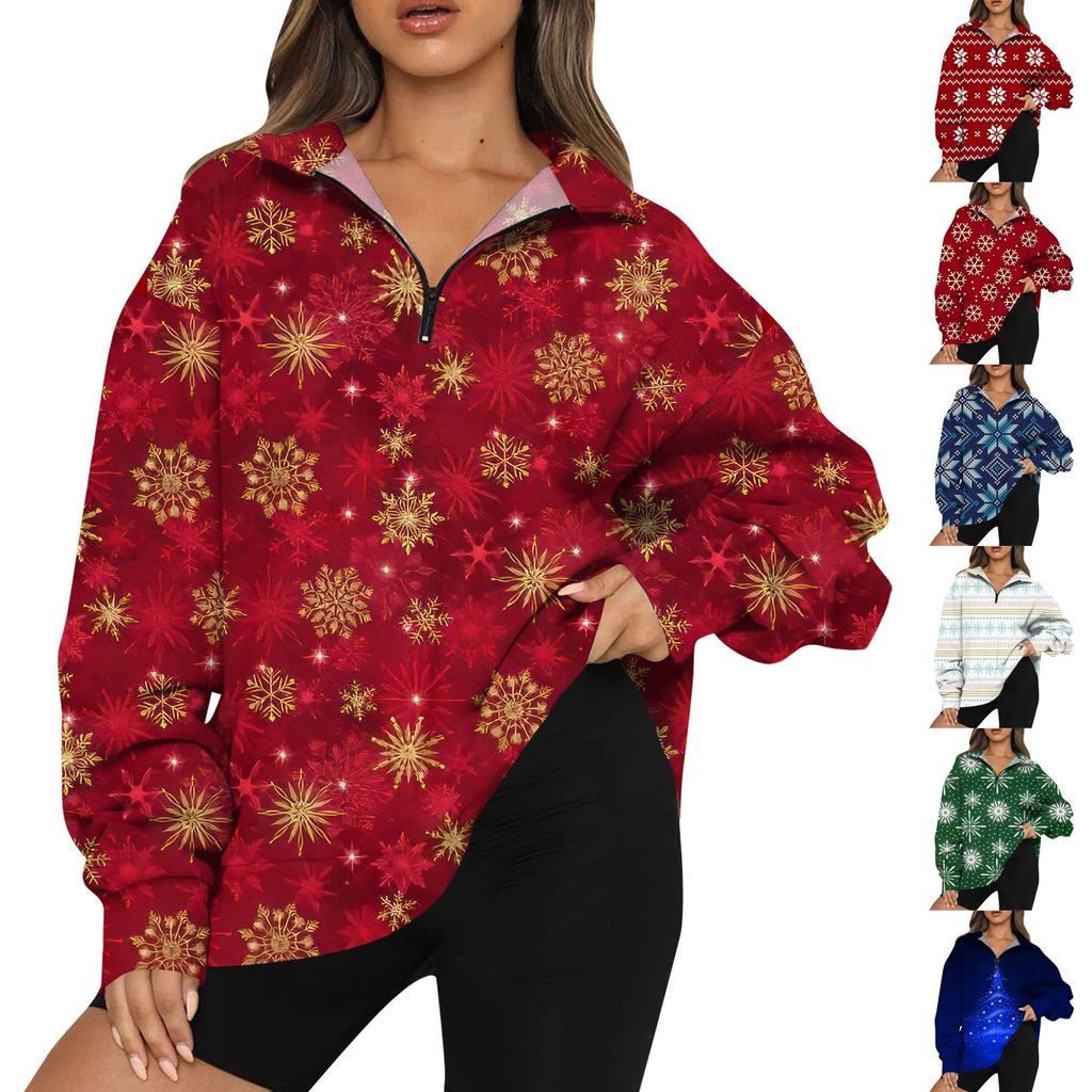 Women's Fashion Casual Long Sleeve Printed Zipper Turtleneck Drop Shoulder Sweatshirt Top — buy online with free worldwide shipping!