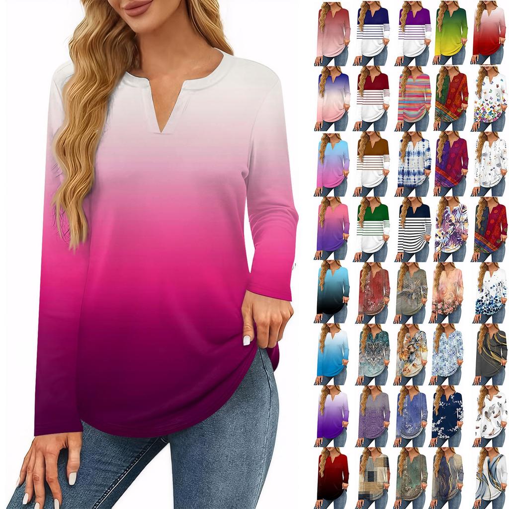 Women's T Shirt Tee Print Long Sleeve Daily Weekend Fashion Basic V Neck Regular Top — buy online with free worldwide shipping!