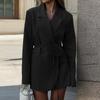 Flower Belt Blazer Coat Women's Street Fashion Loose Pocket Long Sleeve Jackets Autumn Winter Casual Commuter Blazers Female Temperament Coats