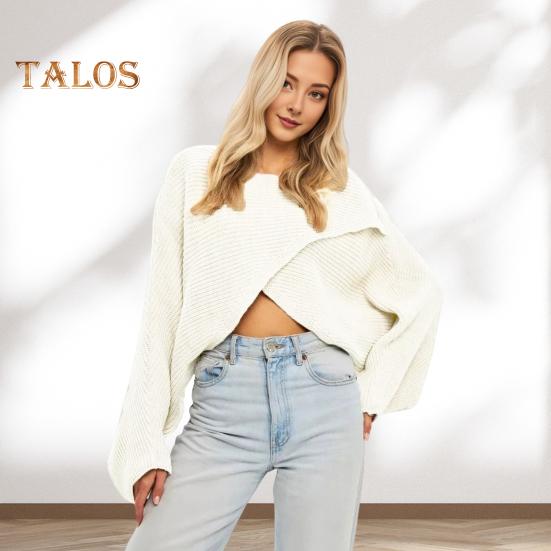 Casual Elegance: Embrace the relaxed sophistication of our sweater featuring a solid color fabric and loose fit design. The round neck, bat sleeves, and navel-baring detail add a touch of casual charm to your look.