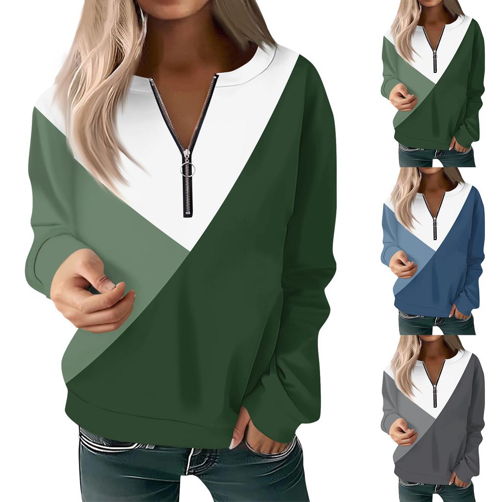 Women's Casual Fashion Colorblock Print Zipper Print Sweatshirt — buy online with free worldwide shipping!