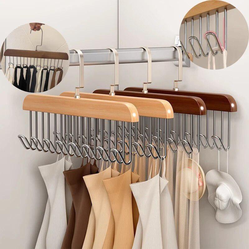 New 1 PCS Multi-functional Solid Wood Hanger Hook Women Storage Bra Hanger Home Belt Hanger Durable 8 Hooks Rack Closet Clothes Organizer
