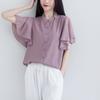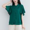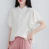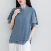 Literary Summer Loose Stand Collar Solid Color Short Sleeve Shirt Women's Fashion Flying Sleeve Blouse Top