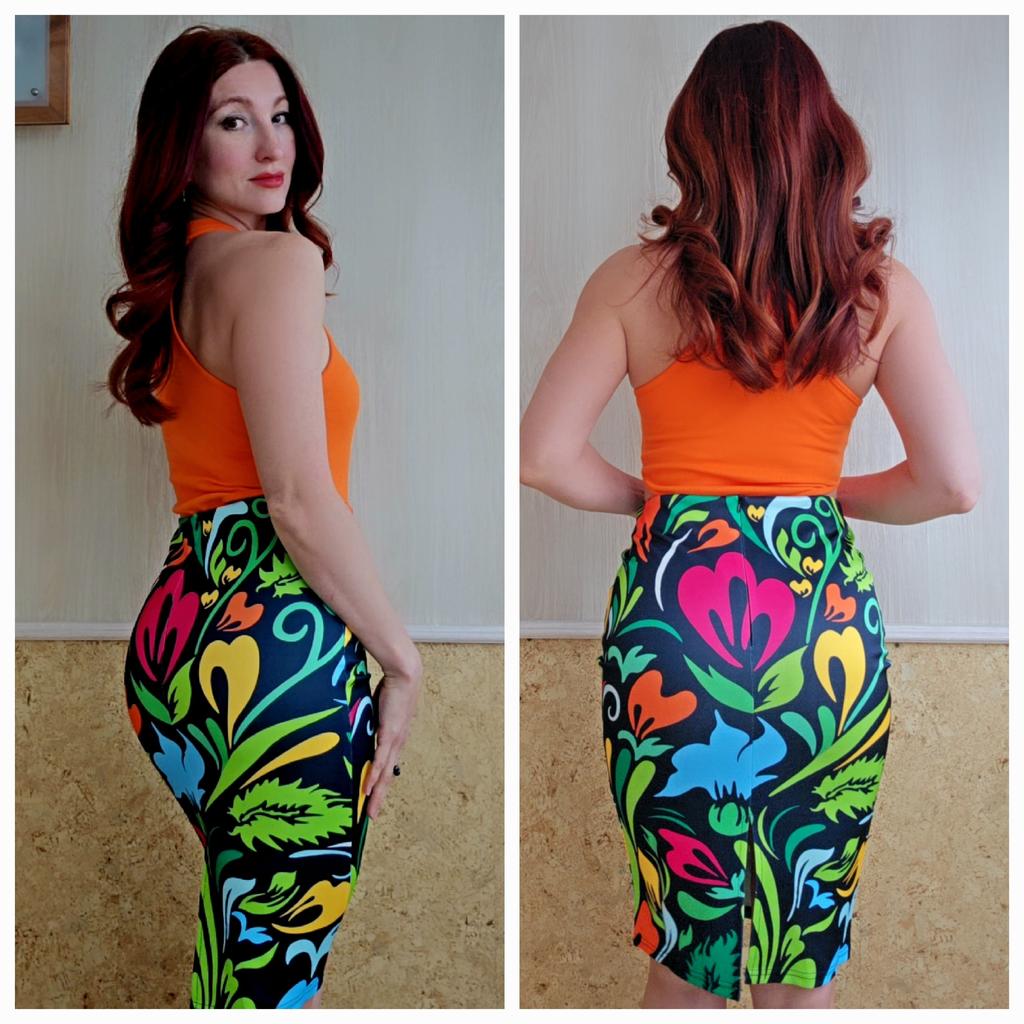 Elegant Hip Skirt Retro Floral Fashion Print High Waist Skirt Knee-length Summer Cool Short Skirt — buy online with free worldwide shipping!