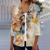 Women's Fashion Loose Casual Printed Three-quarter Sleeve Button Shirt Cardigan Top