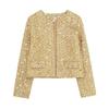 Women Sequins Coat O Neck Long Sleeves Female Loose Jacket Gold Silver Wild Shiny Short Woman Cardigan Coat Streetwear