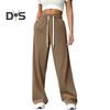 Elastic Drawstring Waist: Featuring a trendy elastic drawstring waist, these wide-leg pants combine style with comfort seamlessly. Whether you're engaging in physical activities or tackling work tasks, this design element ensures a personalized and secure fit while adding a touch of sophistication to your ensemble.
