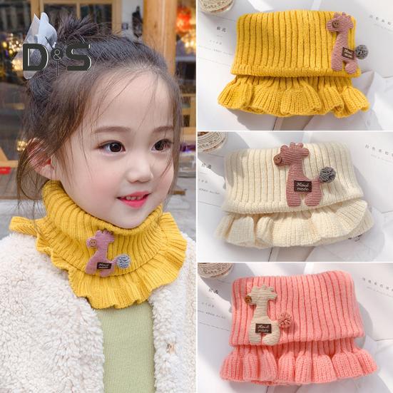 Children Warm Scarf Cartoon Pattern Ruffle Trim Knitted Winter Scarf Thickened Thermal Boys Toddler Elastic Warm Scarf — buy online with free worldwide shipping!