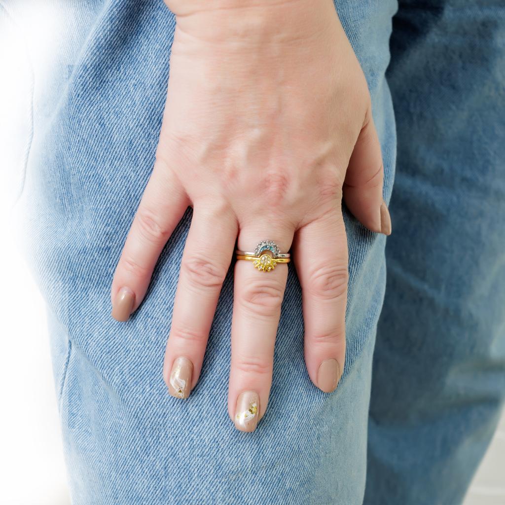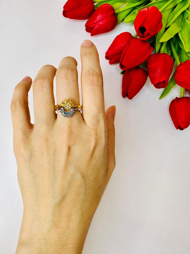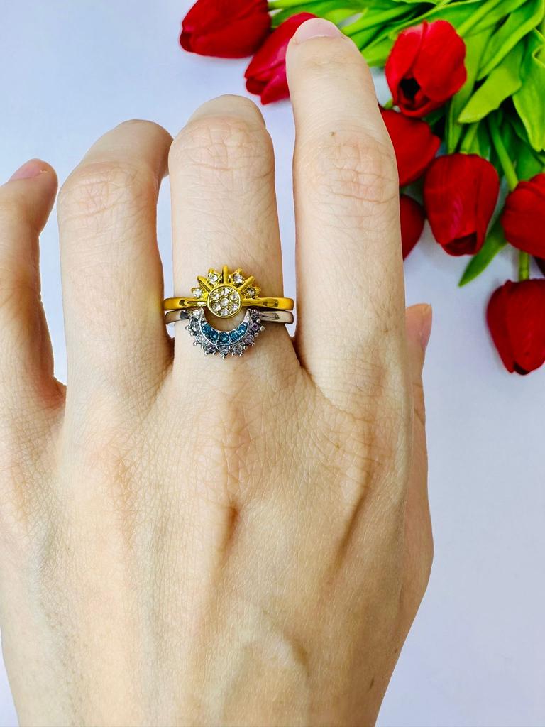 Personalized Simple Design Sense of Sun and Moon, Stacked with Diamonds, Sun and Moon Couple Ring Ring
