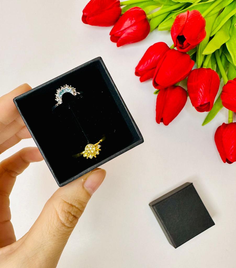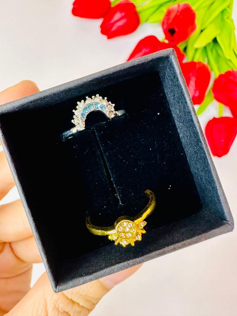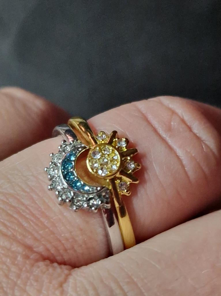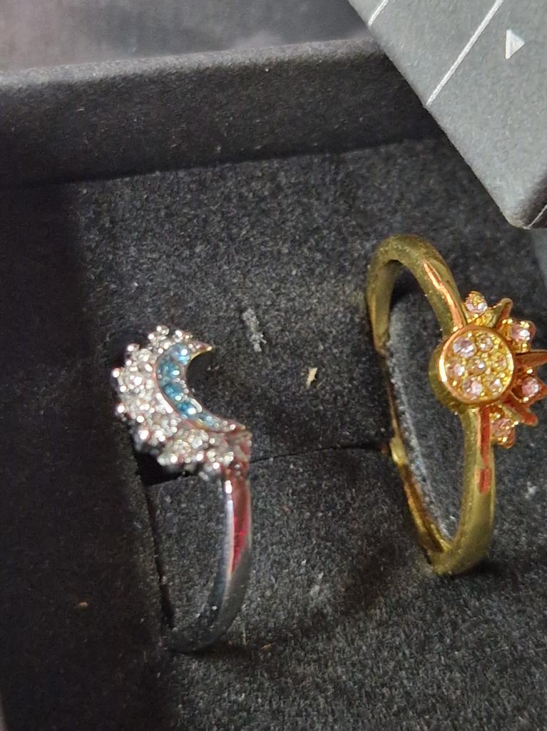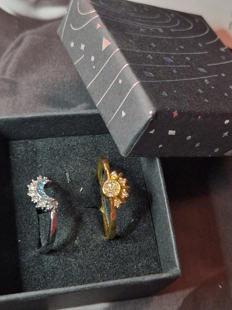 Couples rings,Moon and sun.Very beautiful and unique design.Not suppose to go dark or change colour.Perfect as a gift for special occasions The rings will fir any size as it expands.Came in lovely presentation box in 3 5 weeks.Happy Shopping!