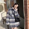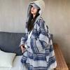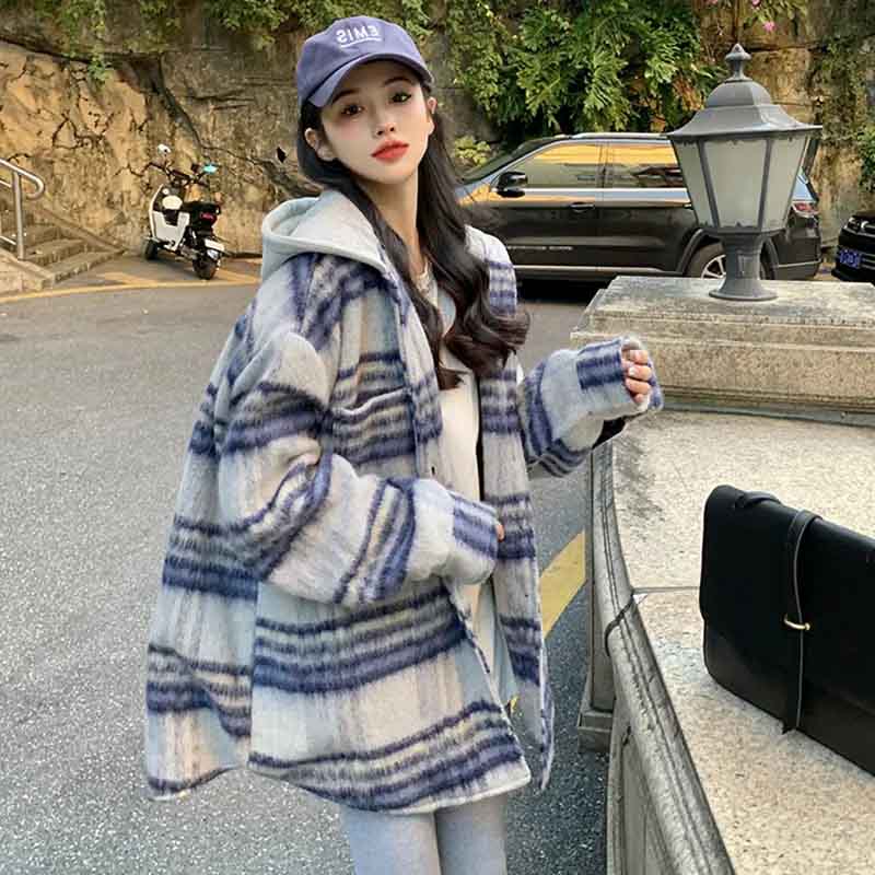 Autumn Artificial Wool Hooded Jacket Women Retro Korean Loose Stripes Casual Tops Harajuku Preppy All-Match Blends Outwear