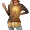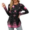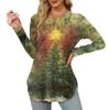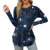 Womens Long Sleeve Round Neck Shirts Side Split Basic Loose Tunic Tops Christmas Print Casual Shirts