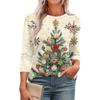 Women's Fashionable Round Neck 3/4 Sleeve Christmas Prints Casual Basic Pleated Pullover T-shirt Top — buy products online with free worldwide shipping!