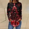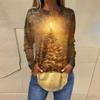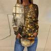 Ladies' Loose Round Neck Retro Pattern Printed Long Sleeved T-shirt Top Pullover For Christmas