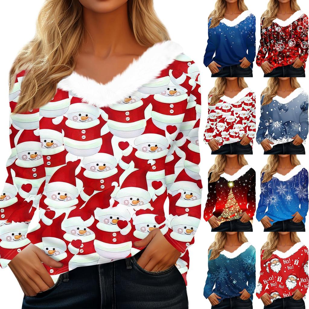Long Sleeve Shirts For Women Cute Tops Christmas Prints Tees Blouses Casual Plus Size Basic Tops Pullover — buy online with free worldwide shipping!