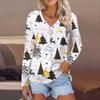 Women's Casual Fashion Sexy Comfort Christmas Printed V-Neck Button Long Sleeve