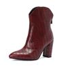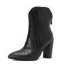 Women's High-heeled Short Boots Autumn and Winter New Solid Color Crocodile Pattern Thick Heel Large Size Pointed Short Boots