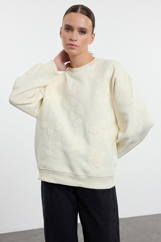 Women's Fashionable Stylish Sweatshirt Ecru Embroidered Regular Normal Pattern Knitted Sweatshirt — buy products online with free worldwide shipping!