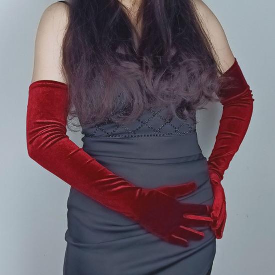 Style: Embrace a retro and elegant look with these golden velvet gloves that exude sophistication and charm. Their timeless design makes them versatile to pair with various outfits, from casual dresses to evening gowns, adding a touch of glamour to any ensemble.