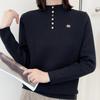 IHUASU Thickened One-piece Velvet Button Jumper Women's Autumn and Winter Half-high Neck Warm Knitted Bottoming Shirt with A Hundred Tops