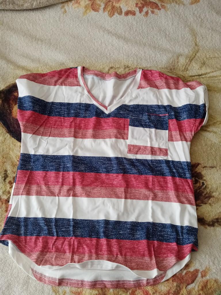 Striped V-neck Bat Sleeve T-Shirt for Women: Cross-border European & American New Spring/Summer Collection — buy online with free worldwide shipping!