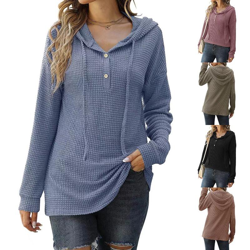 Autumn winter women's loose sports knit sweater, long sleeved button up hooded sweater — buy online with free worldwide shipping!