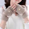 Cashmere Women's Fashion Gloves Flip Thickened Finger Leakage Cold Proof Cartoon Bear Autumn and Winter Warm Gloves