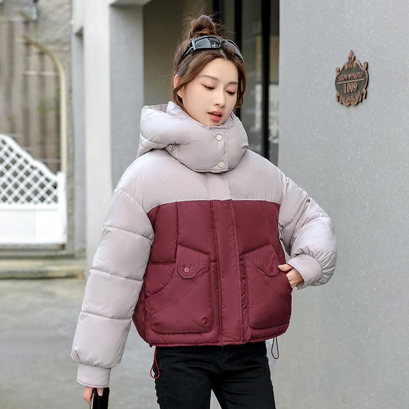 Autumn and Winter Women's Coat Hooded Short Color Matching Loose Casual Thickened Windproof Student Jacket — buy online with free worldwide shipping!