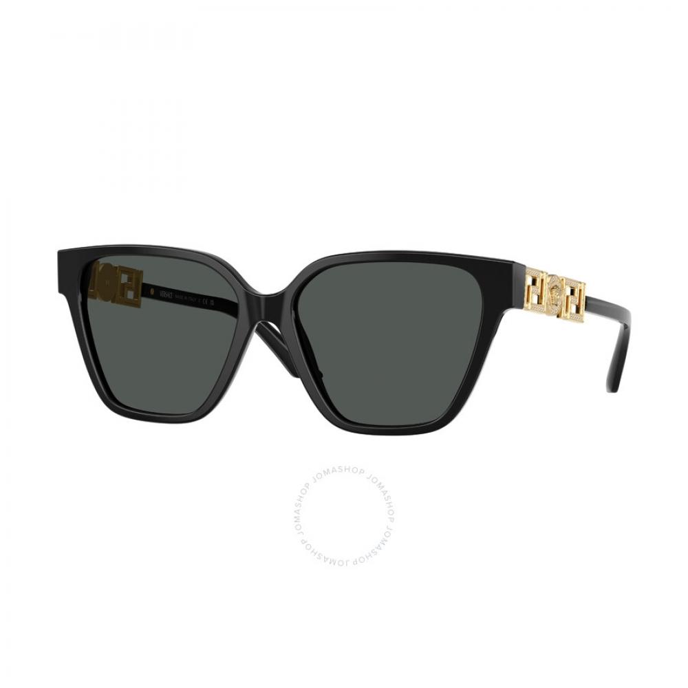 The Versace Dark Grey Butterfly Women's Sunglasses VE4471B GB1/87 56 features a beautiful butterfly shape that is both stylish and flattering. The frame is crafted from high-quality acetate in a classic black color, providing durability and comfort. The lenses are dark grey, providing 100% UV protection and ensuring your eyes are shielded from harmful rays. These sunglasses have a full-rim design, which complements the overall elegance of the frame. With a lens width of 56 mm, a lens bridge of 16 mm, and an arm length of 140 mm, they offer a comfortable fit for women.