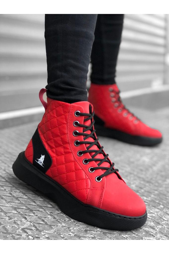 Men's Fashion Genuine Leather Flat Heeled Booties Bootie Ba Lace Up Red Quilted High Sole Sports Boots Shoes