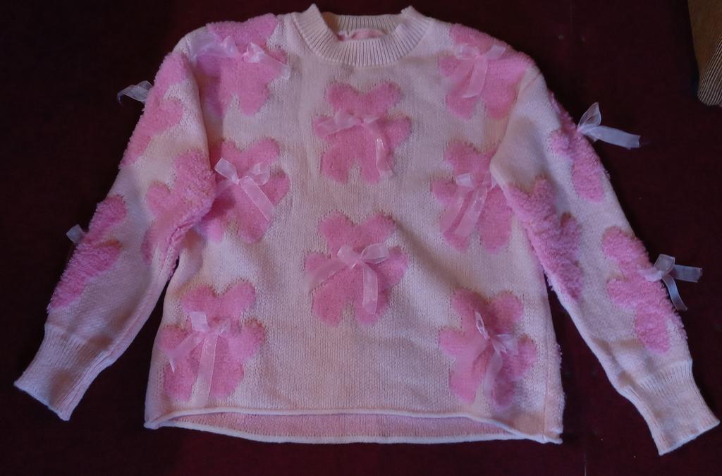 Women's Cute Bow Slouchy Pullover Sweater Fall/Winter Solid Loose Crewneck Long Sleeve Crochet Knitwear Going Out Top Jumper — buy online with free worldwide shipping!