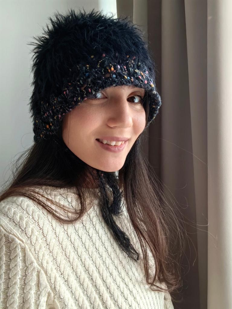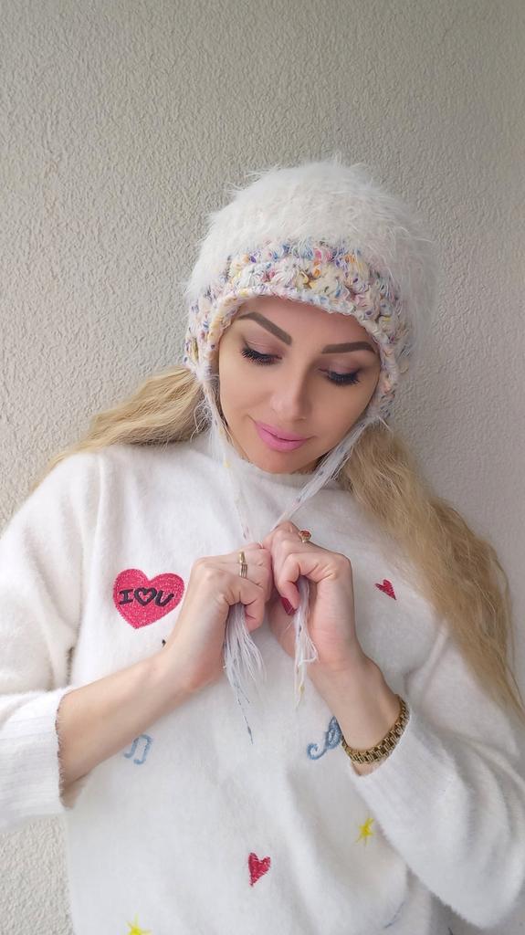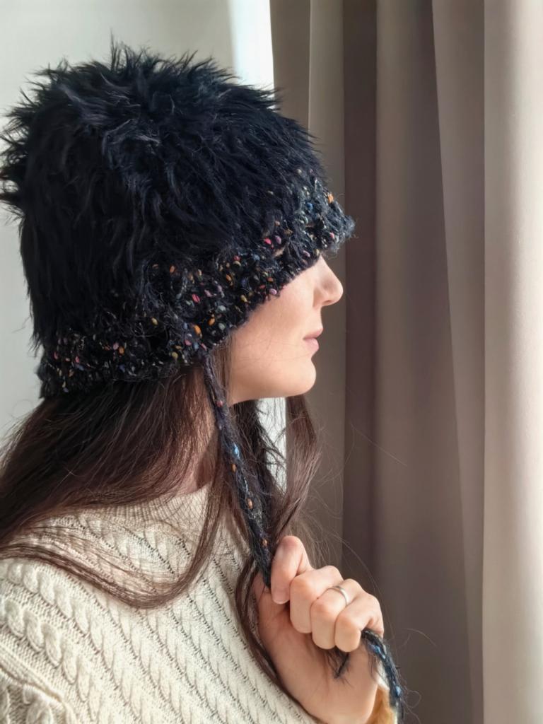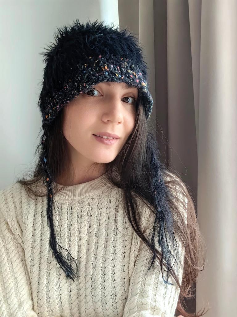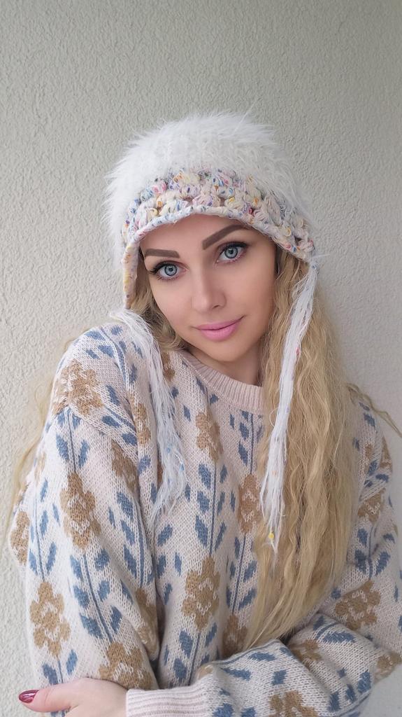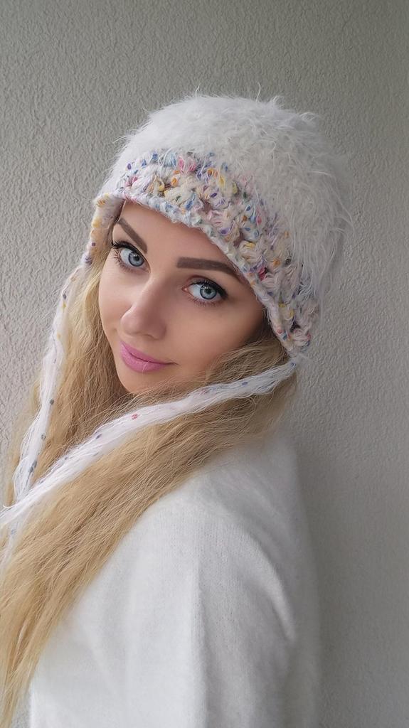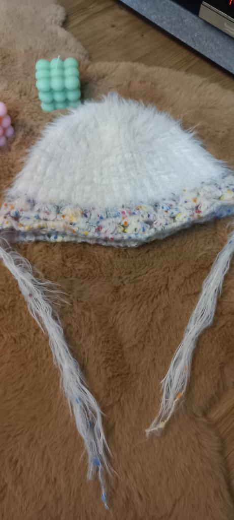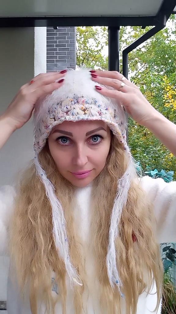 For those who love unusual hats. Assorted colors. On strings. The edge of the hat is perforated. Therefore, it is more of a decorative option. Rather than for warmth.. But it will be perfect in warm autumn. Recommend
