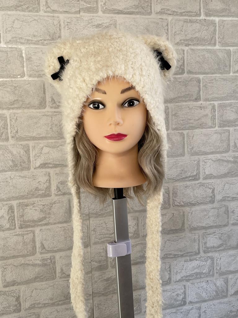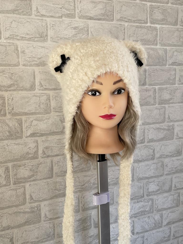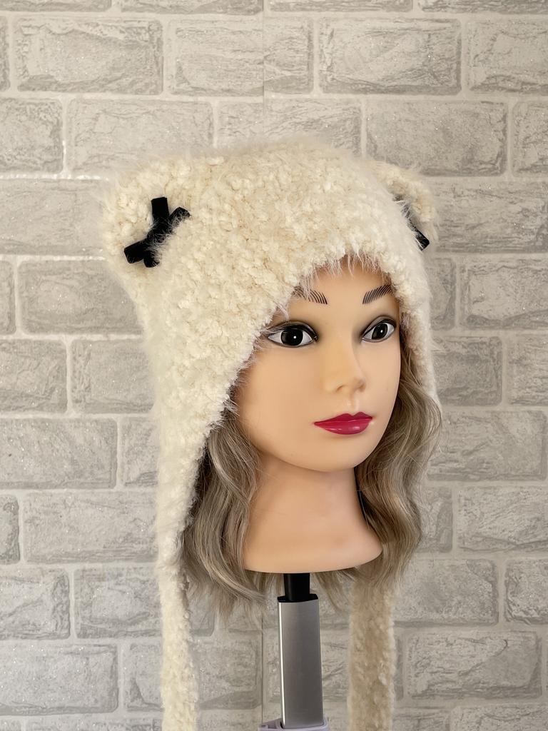 Women Autumn Winter Warm Thicken Ear Protector Hat Cold Fur Velvet Outdoor Cat Ear Bow Bomber Hats Sweet Cute Lei Feng Cap