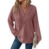 Women's Fashion Long Sleeve Drawstring Hooded Button V-Neck Casual Hooded Sweatshirt Top