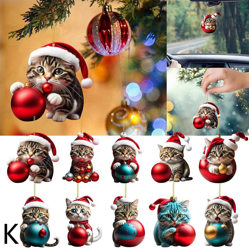 10pcs/set Christmas Tree Cat Ornament Super Cute 10 Cat Acrylic Hat Holiday Car Style Gift Orna U8L5