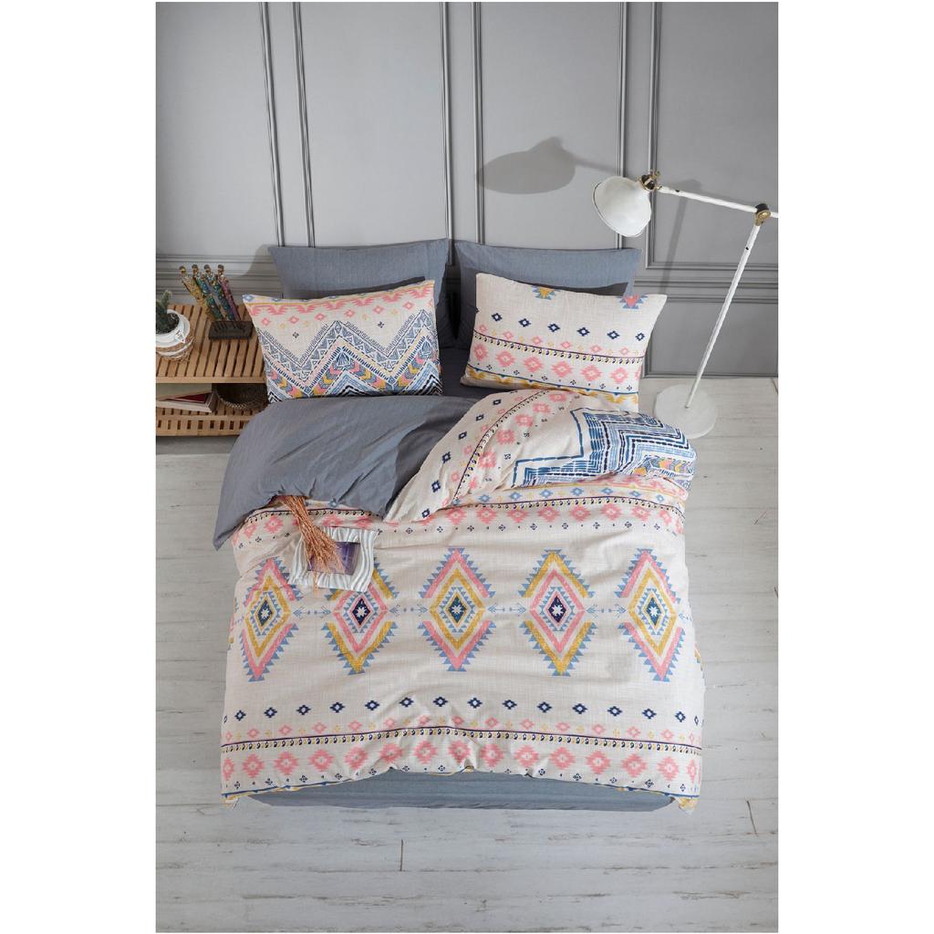 Sahara, Patterned Double Duvet Cover Set With Elastic Sheets, Reusable On Both Sides